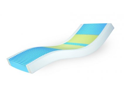 Antidekubitní matrace s paměťovým efektem a vyměkčeným dílem pod patami.