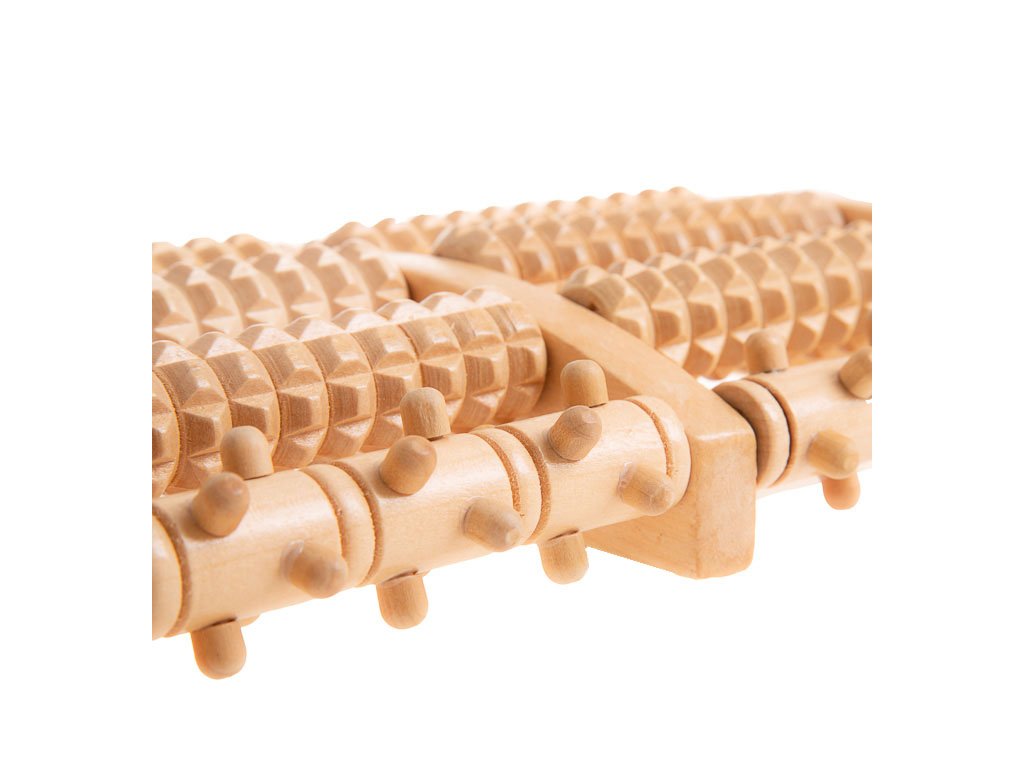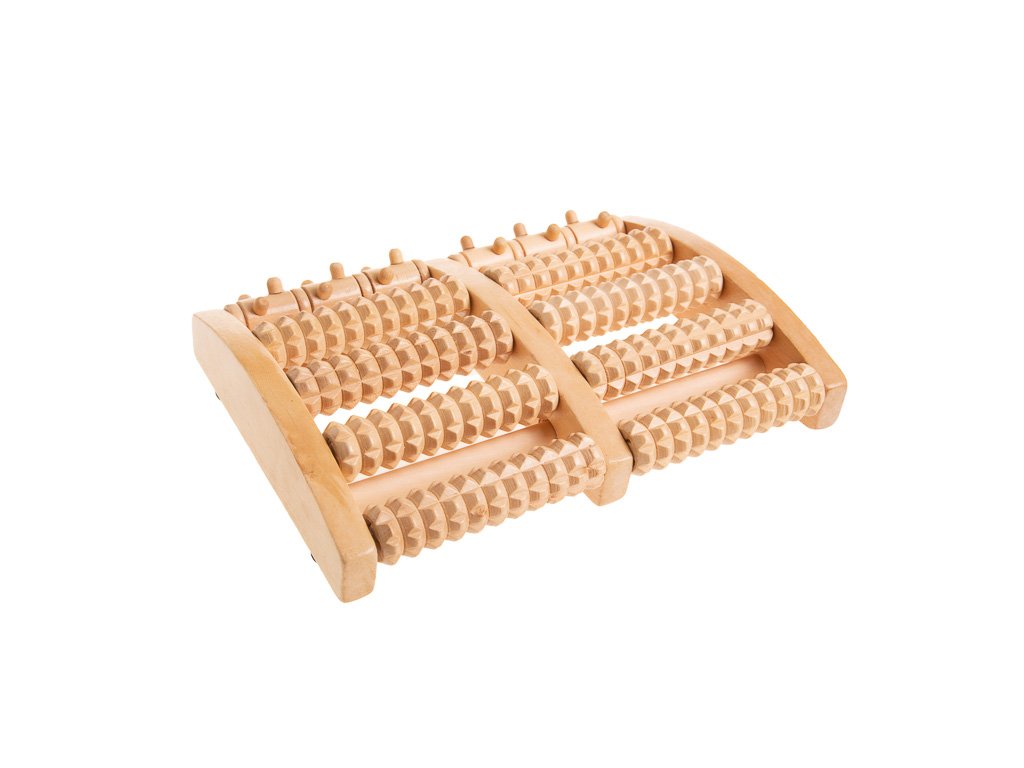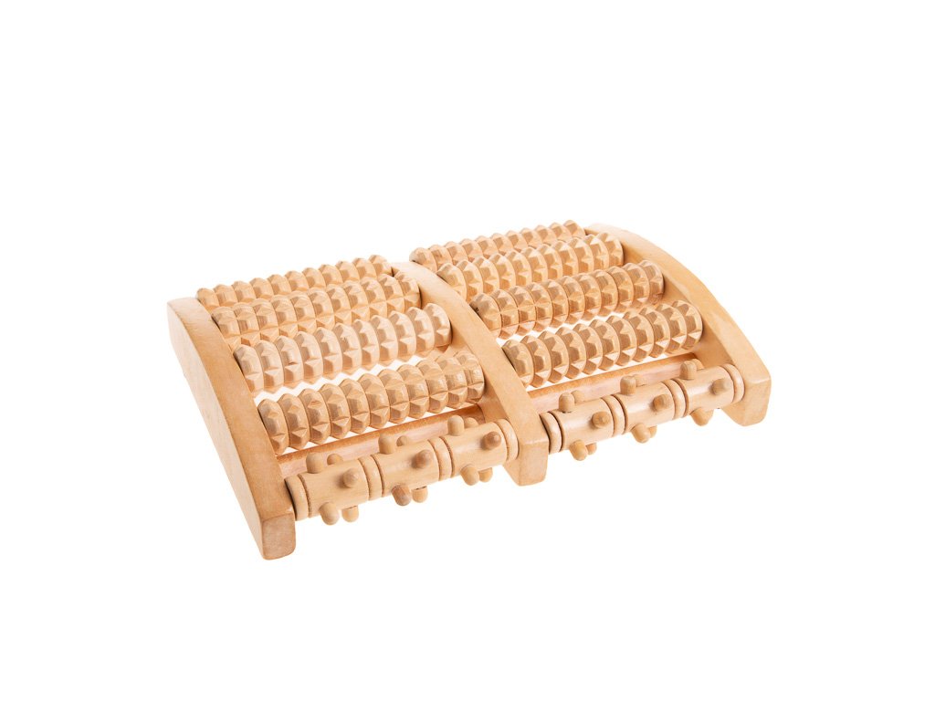 Masáž dřevěnými válečky se provádí v sedě na židli, kdy chodidla položíte na válečky a lehkým pohybem provádíte příjemnou masáž plosek chodidel. Dřevěné válečky představují malé rollery s masážními výstupky.