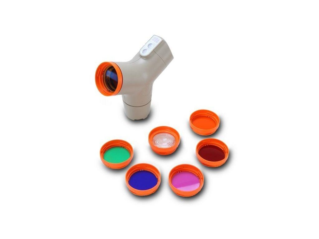 - V kufříku najdete všechny potřebné doplňky, návod, mj. filtry pro světelnou terapii a soustřednou čočku.
