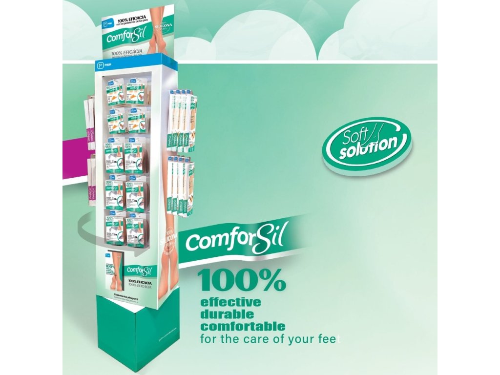 Nová řada silikonových podiatrických pomůcek Comforsil nabízí inovativní, praktické a kvalitní řešení problémů s chodidly. Pomůcky jsou vyrobeny ze 100% čistého, hypoalergenního a netoxického silikonu. Jeho unikátní vlastnosti zaručují dlouhou životnost, odolnost proti prasklinám po celou dobu jeho používání a zachovává maximální míru pohodlí i při intenzivním používání. Zcela se přizpůsobí chodidlu a zaručí rychlou úlevu a odpružení v místech zvýšeného tlaku a zatížení.