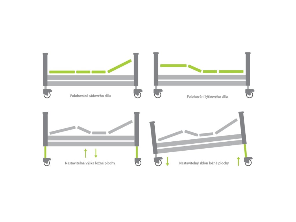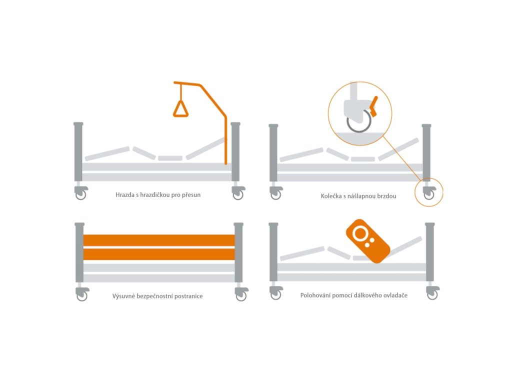 - elektrické nastavení výšky a sklonu lůžka