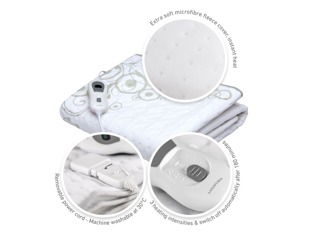 Vyhřívané prostěradlo značky Lanaform je praktické, snadno se používá a nabízí vám možnost nastavení 3 úrovní teploty.