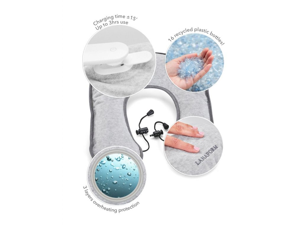 Dopřejte si příjemné teplo kdykoliv… Nabíjecí termofór Lanaform Neck Warmer na ramena a krk pomůže od bolesti a svalového napětí. Termoterapie, neboli aplikace tepelného zdroje na cílové části těla aktivuje krevní oběh a podporuje obnovu buněk. Hřejivý polštář Neck Warmer je ihned připraven k použití. Nevyžaduje žádné plnění, takže nehrozí popálení prstů. K plnému nabití postačí 10 – 15 minut. Po nabití vyzařuje jemné, konstantní teplo po dobu nejméně 3 hodin. Během této doby můžete relaxovat nebo číst, ale také vařit, pracovat, prostě všechno možné bez omezení.