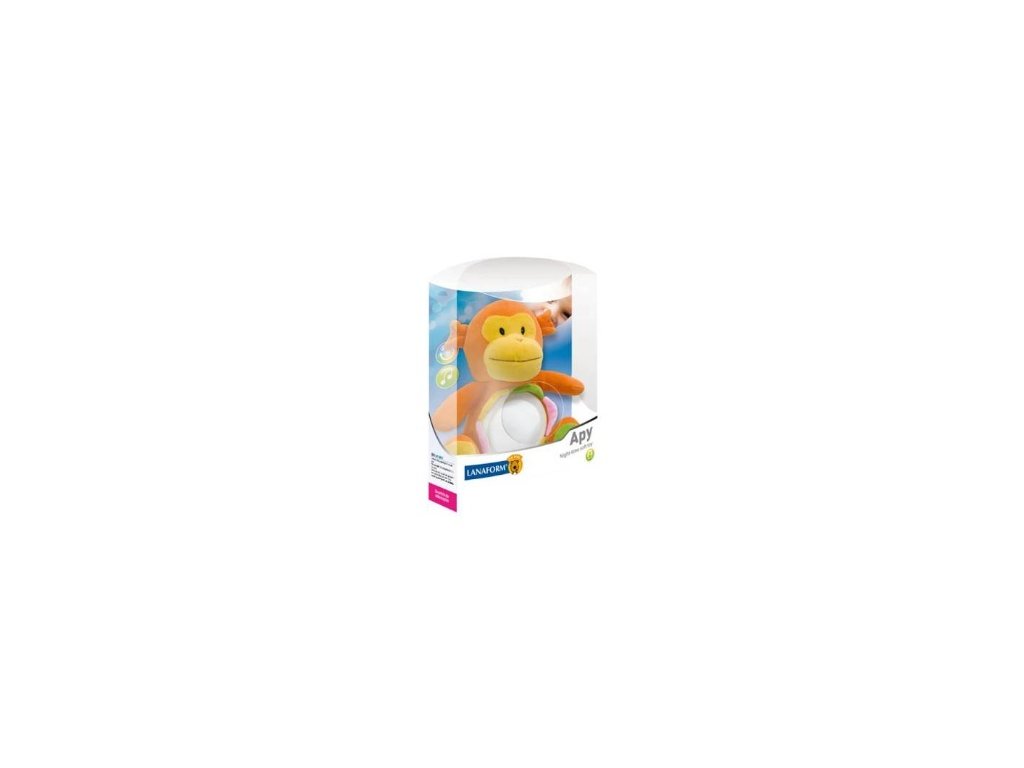 Kombinuje v sobě světlo, hudbu a zvuky a navazuje tak hravý dialog s dítětem. Příjemný materiál je předpokladem toho, že si Vaše dítě tuto hračku oblíbí. Uklidňující melodie a tlumené světlo, které Apy vydává, zklidní Vaše dítě při usínání a inspiruje jej ke sladkým snům.