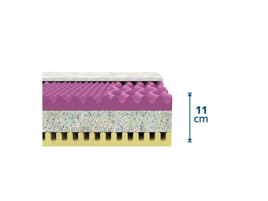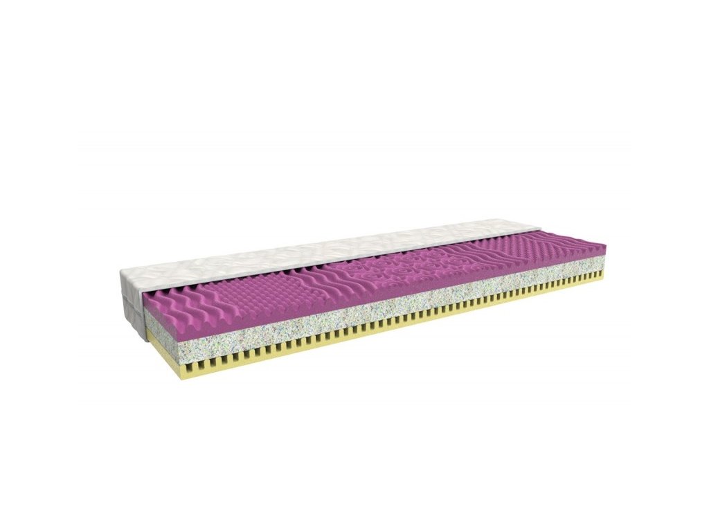 Matrace Olivia s výškou 11 cm a nosností 120 kg vám zajistí zdravý spánek po celý rok. Mezi dvě horní vrstvy je do středu matrace vložena deska z pojené polyuretanové pěny pro dosažení optimální tuhosti a zvýšení životnosti. Vrstva z prodyšné vysoce elastické pěny je dělena do 7 anatomických zón. Profilování jednotlivých pěnových desek umožňuje správné odvětrávání matrace. Matrace je pohodlná, poskytuje spolehlivou oporu ve spánku a umožní vám klidný odpočinek. Vyberte si k ní jakýkoliv potah a rošt nebo pevnou podložku.