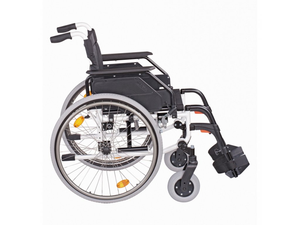 Odlehčený mechanický vozík se skládacím rámem z duralu s moderním bílým perleťovým lakem. Vozík dodáváme v šířích sedačky 39, 42, 45 a 48 cm a v zesíleném provedení pak 51 cm. Základní nosnost vozíku je 125 kg, v zesíleném provedení 130 kg. Důmyslné konstrukční řešení umožňuje nastavit výšku sedačky od země rozsahu 42 až 51 cm bez nutnosti instalace menších předních kol. Přizpůsobení vozíku uživateli napomáhají také vidlice s nastavitelným sklonem. Osu zadních kol vozíku je možno posunout až za osu zádové opěrky a zvýšit tak stabilitu vozíku pro osoby s amputací dolních končetin. Bočnice vozíku Caneo E jsou odklopitelné s možností nastavení polohy polstru. Dělené stupačky vozíku jsou odklopitelné, délkově nastavitelné a nášlapné plochy jsou doplněny opatěnkami.