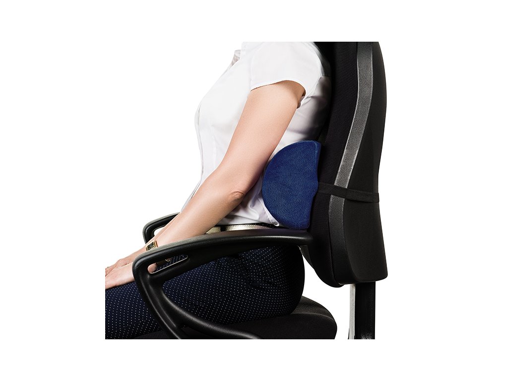 Univerzální tvar polštáře LUMBAR HALF ROLL umožňuje jeho všestranné použití. Je ideální pro krk, bederní páteř, kolena, chodidla a mezi koleny jako oddělovač. Polštář je vyroben z paměťovné pěny a dokonale odpovídá anatomickým křivkám těla. Má nastavitelný popruh, který umožňuje správné umístění polštáře na opěradlo židle nebo křesla.