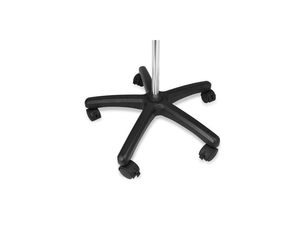 Základna s kolečky je zhotovená z odolného plastu, stojka + výsuvná část je duralová, chromovaná.