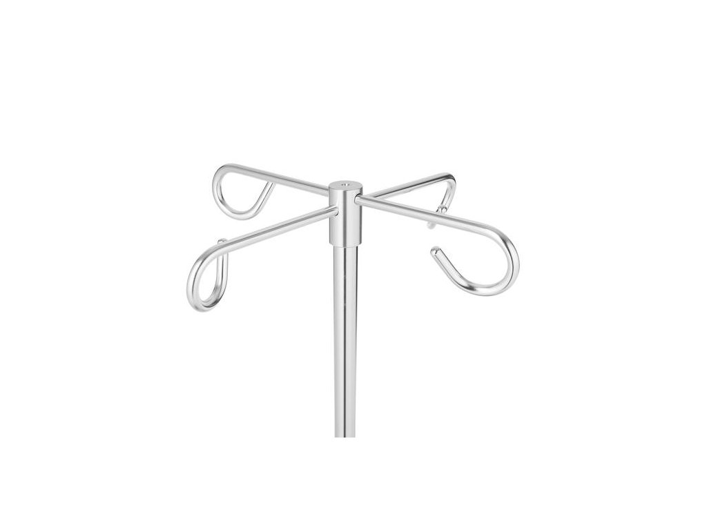 Pojízdný infúzní stojan s výškovým nastavením pro použití se 2 anebo 4 kovovými háky (součást balení).