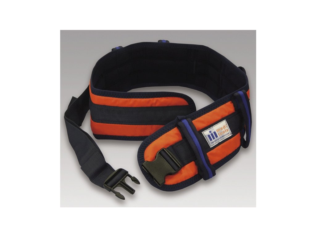 Pás s úchyty a sponou k přesunu imobilních osob L. Pomůcka usnadňuje manipulaci s imobilním pacientem, jeho přesun a vedení.
