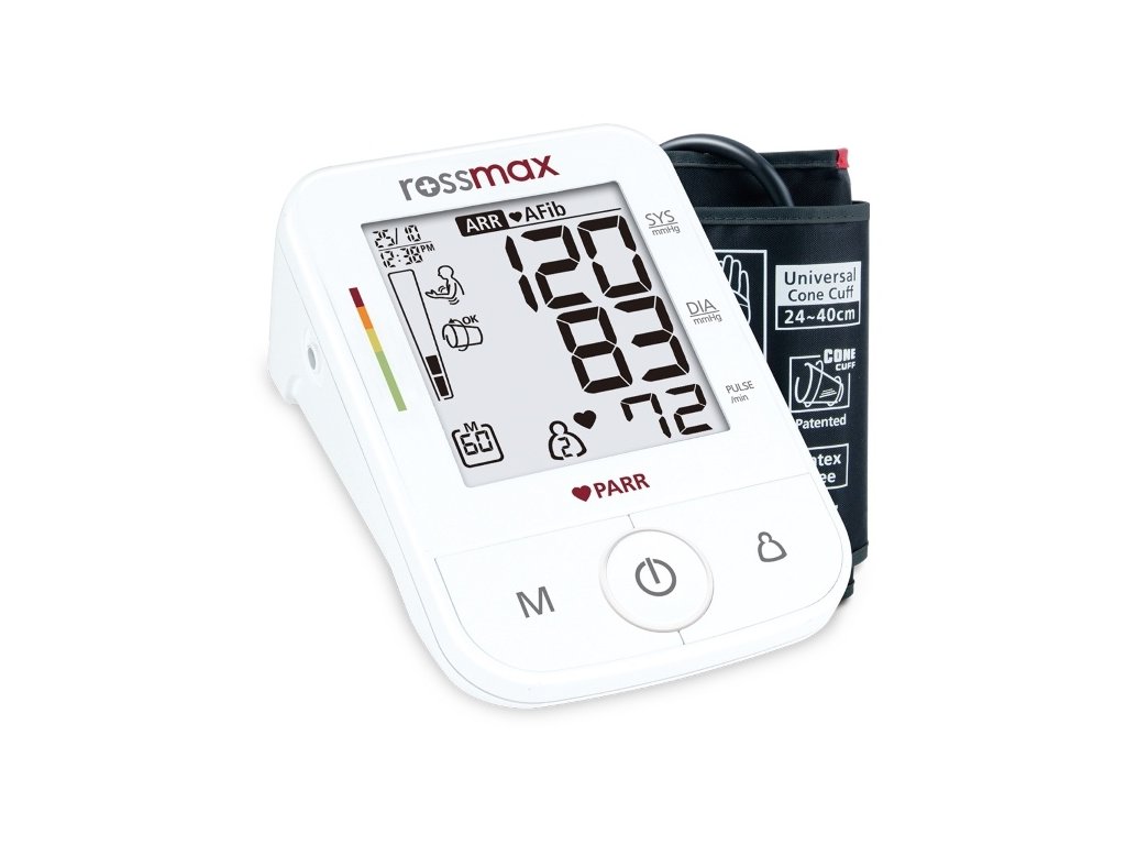 Tlakoměr Rossmax X5 je komplexní přístroj pro kontrolu krevního tlaku a kontrolu všech forem srdečních arytmií. Detekuje běžnou arytmii (nepravidelný srdeční tep), fibrilaci síní a předčasné kontrakce. Díky této unikátní kombinaci funkcí jde o jediný tlakoměr na trhu, který je určen k přímé prevenci rizik spojených se vznikem mozkové mrtvice.
